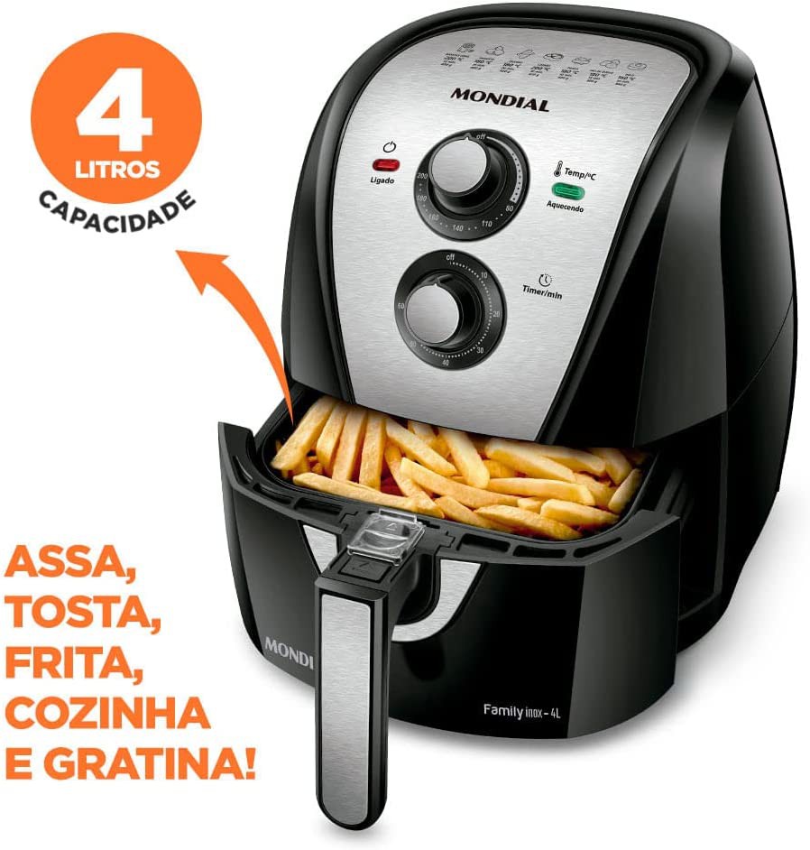 Fritadeira a Ar Mondial, Family Inox Black - 4L, 110V, 1500W - AFN-40-BI