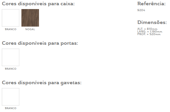 Opções de cores: (1) Branco/Branco; (2)Montana/Kalahari; (3)Nogal/Branco