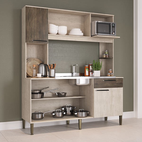 Com diversos compartimentos e muito espaço, a cozinha Milão, com certeza, irá atender suas necessidades diárias na cozinha.
