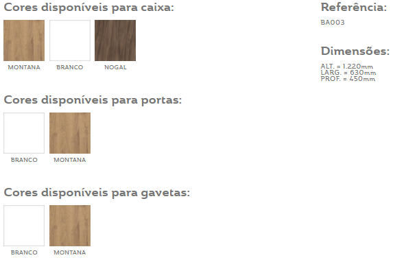 OPÇÕES DE CORES: (1)Branco/Branco; (2)Montana/Montana; (3) Nogal/Branco.